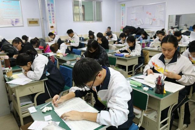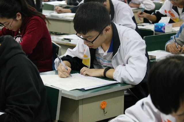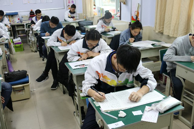 学生们认真答题,遵守纪律,考场秩序井然。