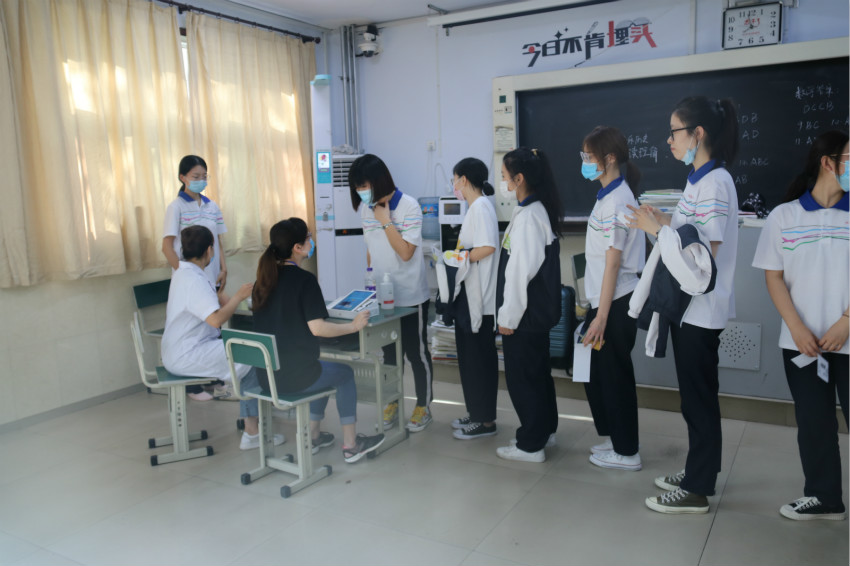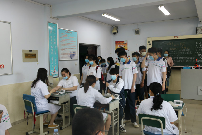 高考体检工作意义深远、责任重大,高考体检进校园,大大保证了学生的安全、降低了防控风险,学校高度重视、严格组织、细致安排,各部门的互相协调共同助力高三学子,为他们保驾护航!预祝全体高三学子花开七月,金榜题名!