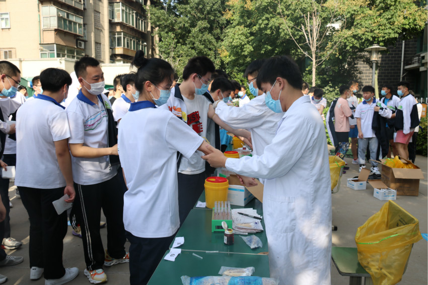 整个过程严格按照错峰、分段、分批进行,学生在往返场途中都由班主任陪同,排队过程中学生全程佩戴口罩,确保体检工作有序进行。